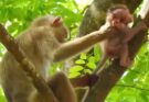 Adorable mischievous baby monkey learns important lesson after gentle scolding from caring mother today again Read More