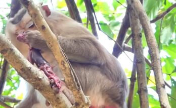 Heartwarming moment Mother Monkey Rozy safely delivers newborn baby monkey touching hearts worldwide today scene Read More