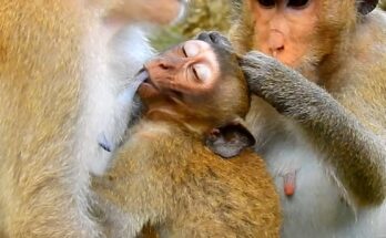 Oh God—what began as a quiet morning suddenly turned into a desperate rescue when an old mama monkey became dangerously stuck. Her movements were slow, her breathing heavy, and panic …
