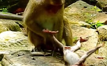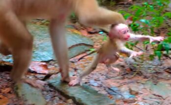 In a deeply emotional and heartbreaking moment, a tiny baby monkey finds itself alone, frightened, and desperately calling out for its mother. The scene unfolds with an overwhelming sense of …